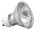 - Halogeny z reflektorem. Występują obecnie w różnych mocach i co ważniejsze z różnymi kątami skupienia światła. Dzięki temu dla każdego oświetlanego obiektu możemy dobrać halogen o takim kącie świecenia, aby uzyskać oczekiwany efekt (aby obiekt był oświetlony w całości lub w części). Standardowy reflektor w kierunku oświetlanego przedmiotu odbija zarówno światło jak i ciepło wytwarzane przez żarnik. Reflektory wykonane z aluminium odbijają 100% światła i 95% ciepła, dlatego aby zapobiec nadmiernemu nagrzewaniu się oświetlanych przedmiotów, produkowane są halogeny o specjalnej konstrukcji, z tzw. reflektorami dichroicznymi, które przepuszczają ok. 66% ciepła do tyłu. Dzięki temu uzyskujemy odbicie 33% ciepła i 95% światła w kierunku oświetlanego przedmiotu. Zatem jeśli zamierzamy wykorzystać halogeny dichroiczne w sufitach podwieszanych, w tzw. "oczkach halogenowych", musimy zapewnić odpowiednią wentylację nad sufitem (naturalną lub wymuszoną) które umożliwi odprowadzić wytwarzane przez halogeny duże ilości ciepła. Dlatego między innymi dla danego źródła światła (głównie halogenu z reflektorem) producenci podają minimalną odległość między źródłem, a oświetlanym przedmiotem. Zazwyczaj jest to 0,5m.