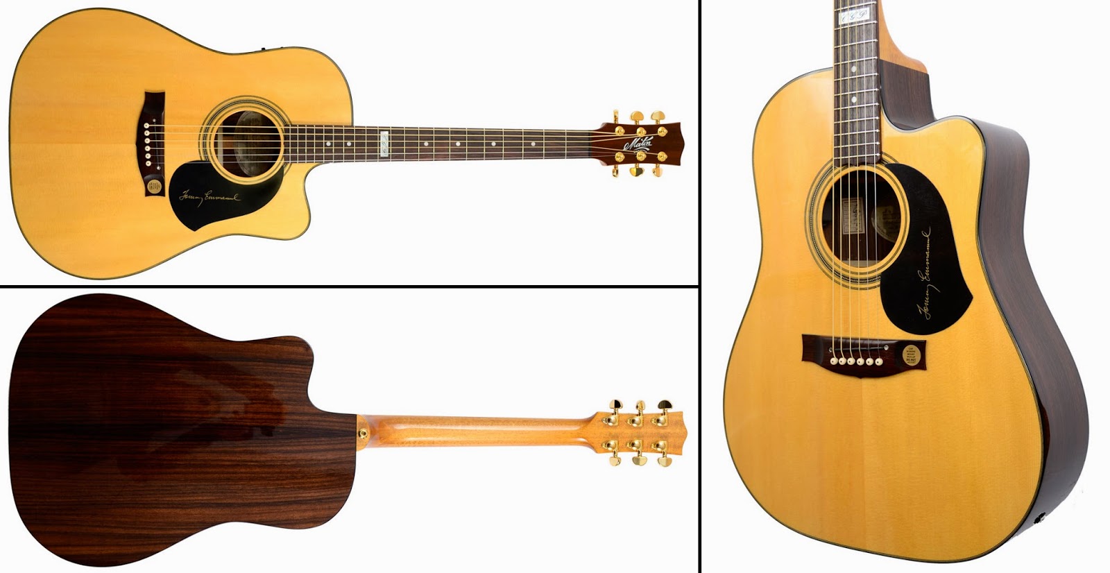 Przykład gitary akustycznej. Bardzo drogi instrument z najwyższej półki - TE1, australijskiej firmy Maton. Model sygnowany przez Tommy'ego Emmanuela, wirtuoza gitary akustycznej (zdjęcie pobrano ze strony discorsivo.it).